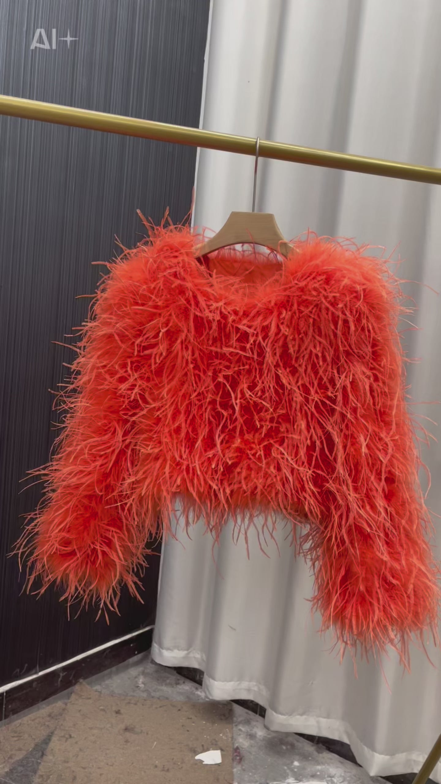 Straußenfedermantel, Damen-Kurzjacke, handgewebte Echtwolle, Plüschoberteil, Großhandelsbekleidungsfabrik, kann individuell angepasst werden