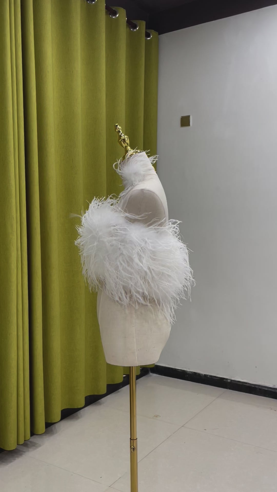 Straußenfeder Weste Tube Top für Frauen sexy Off-Shoulder Top handgefertigt