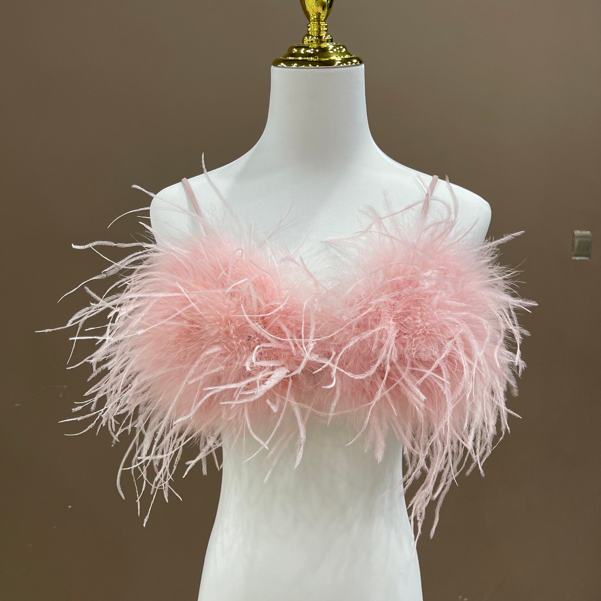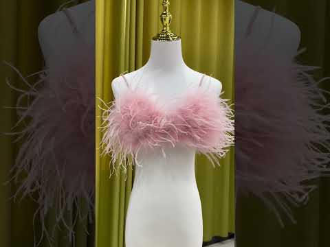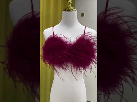 Ostrich feather bra, ostrich feather vest, ostrich feather chest wrap, backless sexy bra, women's beautiful back bra, outer wear bra vest, wholesale, clothing factoryTriangle cup bra