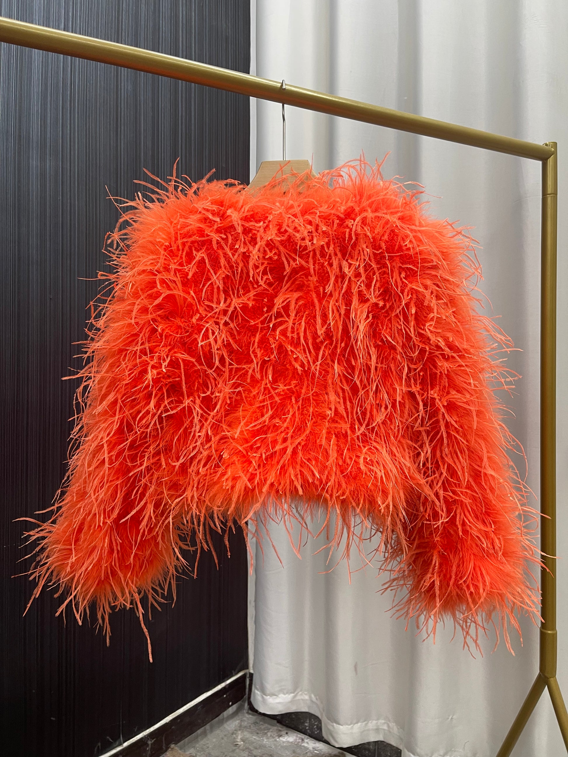 As a factory specializing in feather clothing and apparel, we offer wholesale and custom services. Made from premium ostrich feathers, this garment has a luxurious and unique look. Our premium feather clothing can enhance your style.