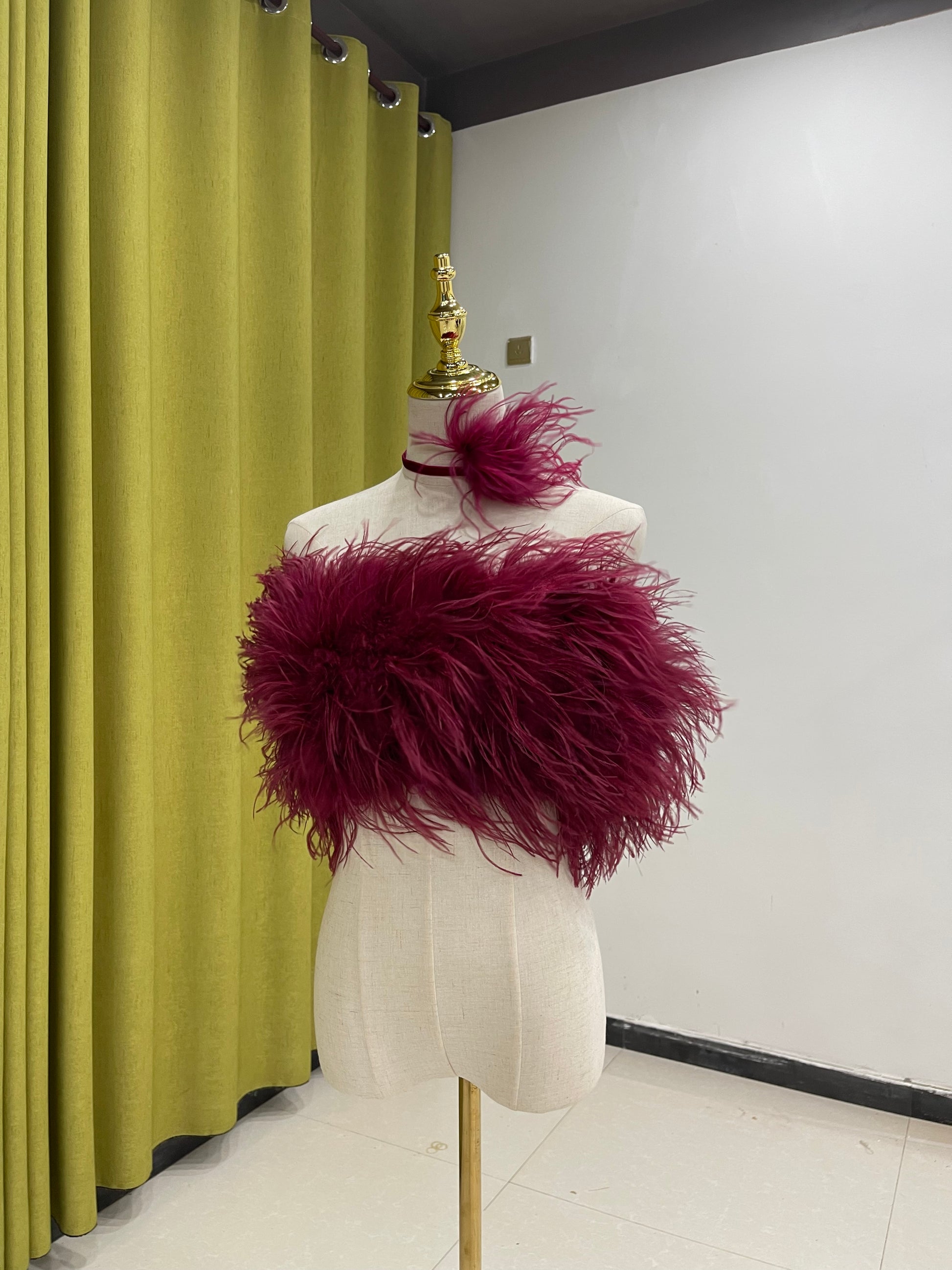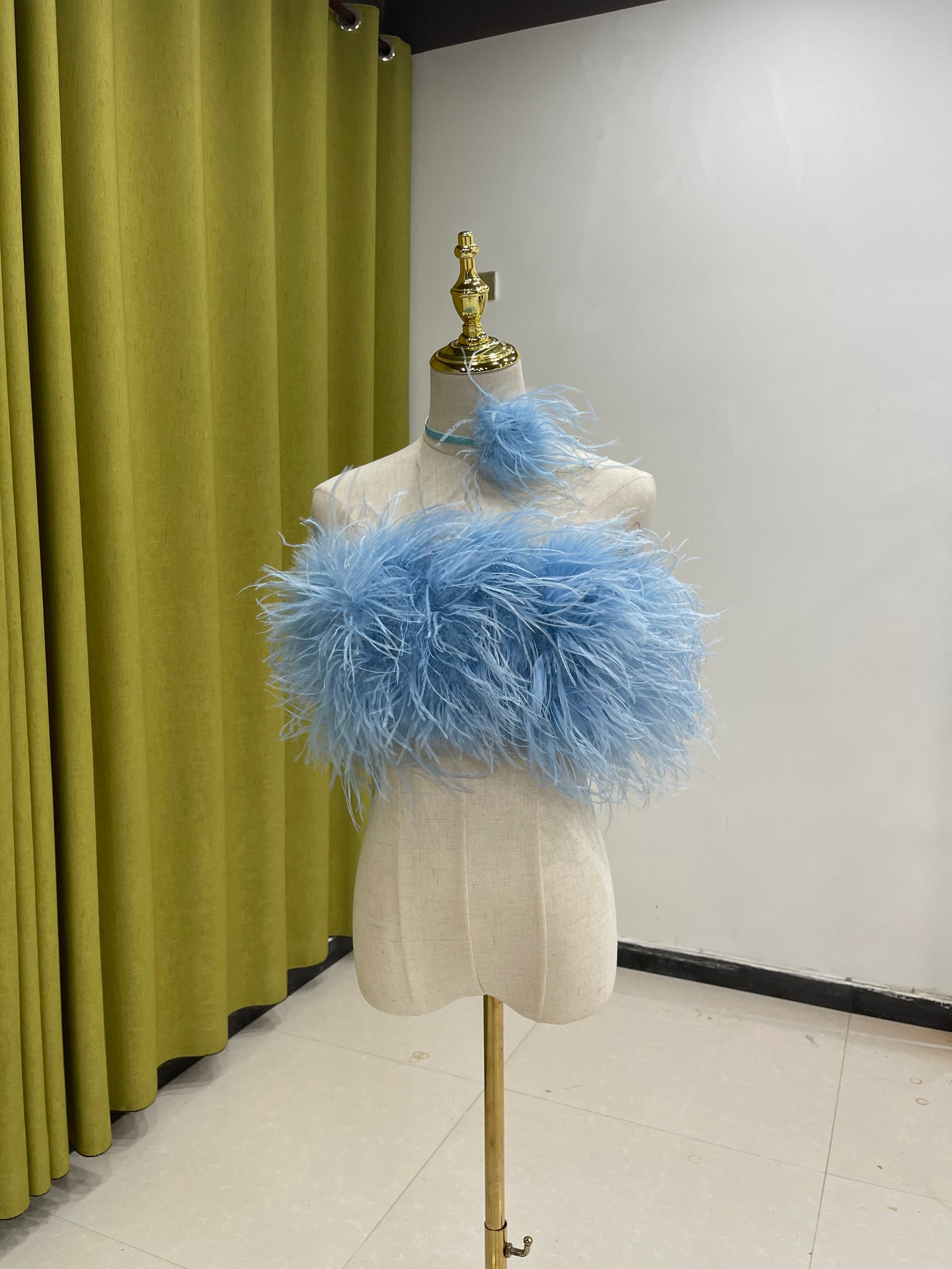 Ostrich feather vest tube top for women sexy off-shoulder top handmade