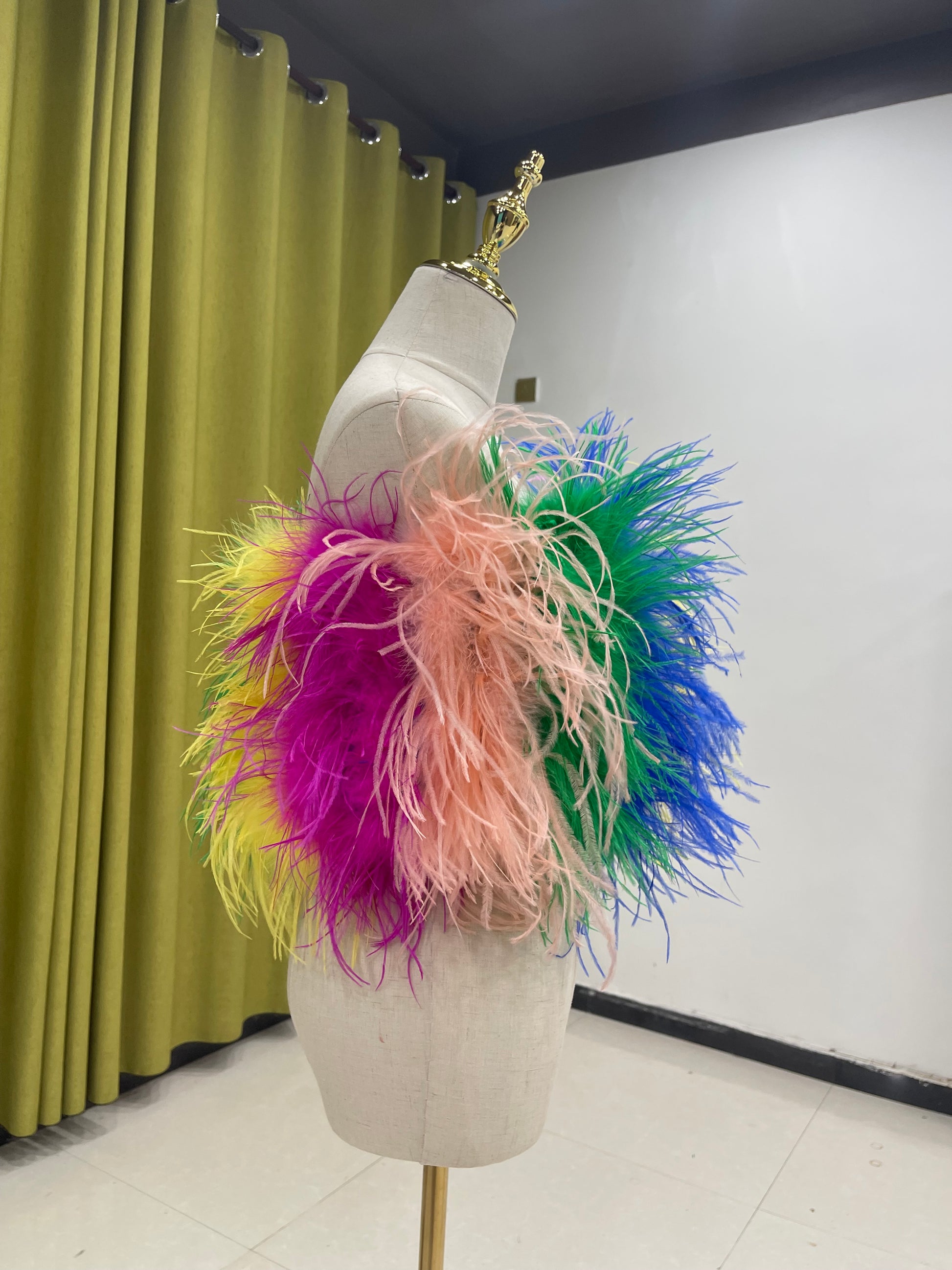 30cm long splicing color bra, feather bra, ostrich feather sleeveless top, off-shoulder vest for women, can be customized, can be wholesaled