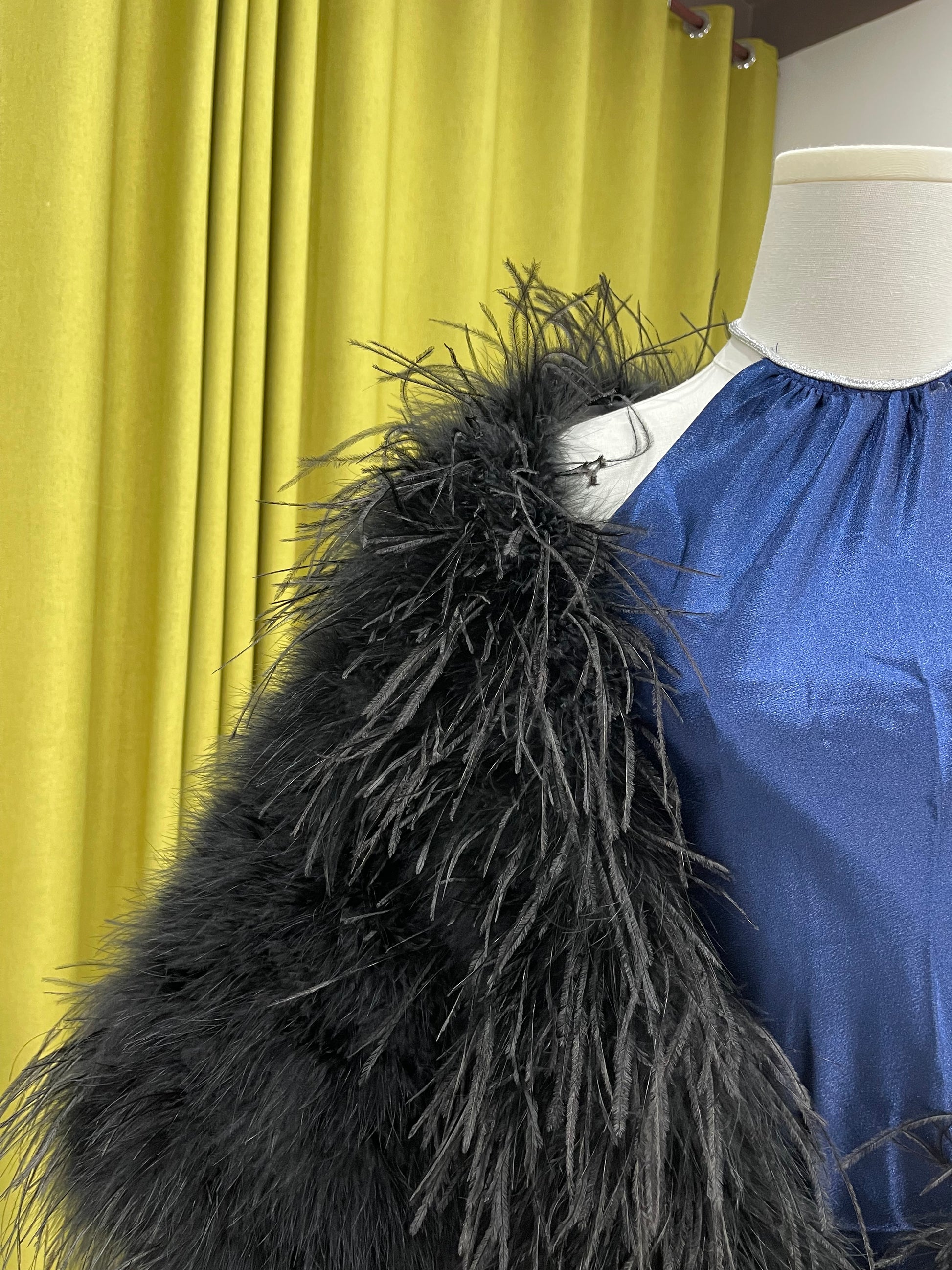 这款披肩由两种羽毛制成:鸵鸟毛和火鸡毛。披肩内部添加了棉布,时尚而温暖。整条披肩非常柔软,穿着舒适。搭配晚宴连衣裙非常时尚。它可以搭配基础衬衫和日常连衣裙。非常实用且百搭。有多种颜色供您选择。