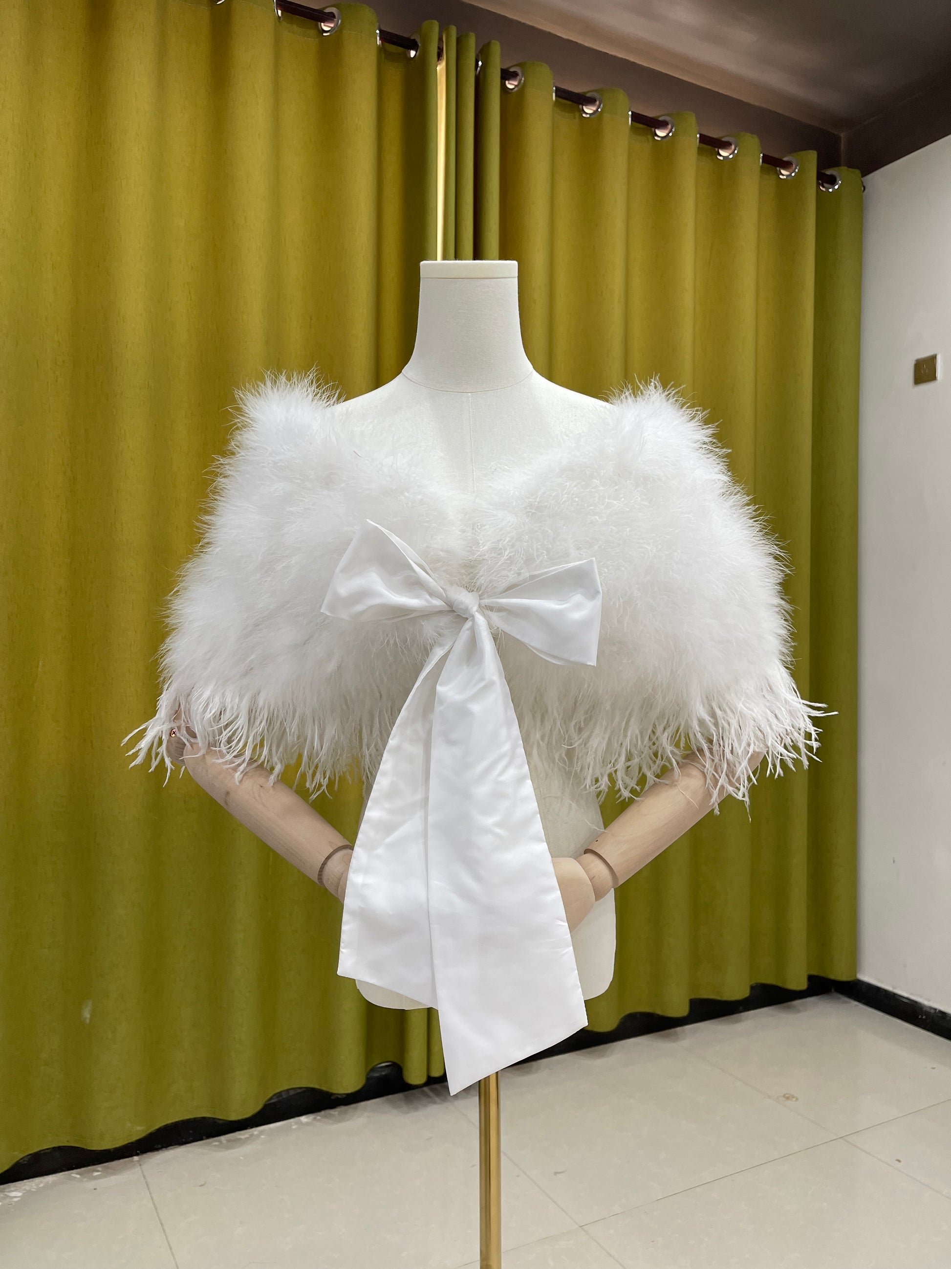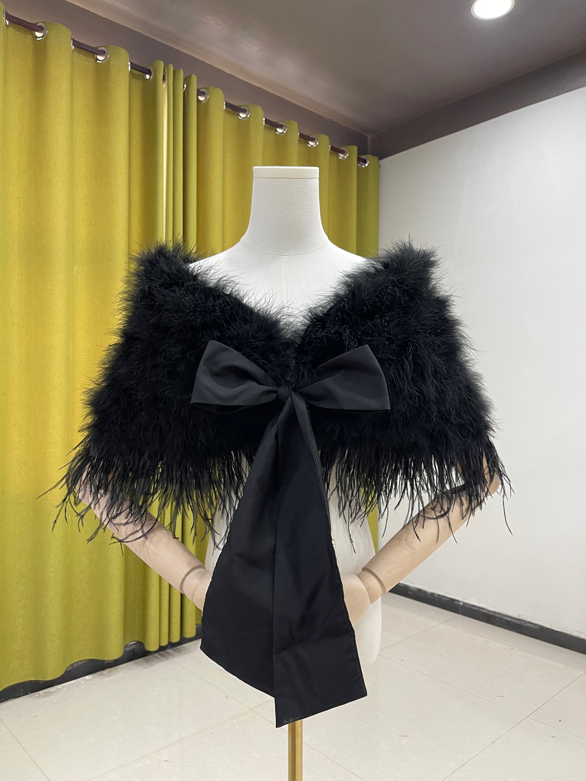 这款披肩由鸵鸟毛和火鸡毛两种羽毛制成。整条披肩非常柔软舒适。搭配连衣裙出席晚宴非常时尚。日常可搭配打底衫和连衣裙,实用百搭。有多种颜色可供选择。