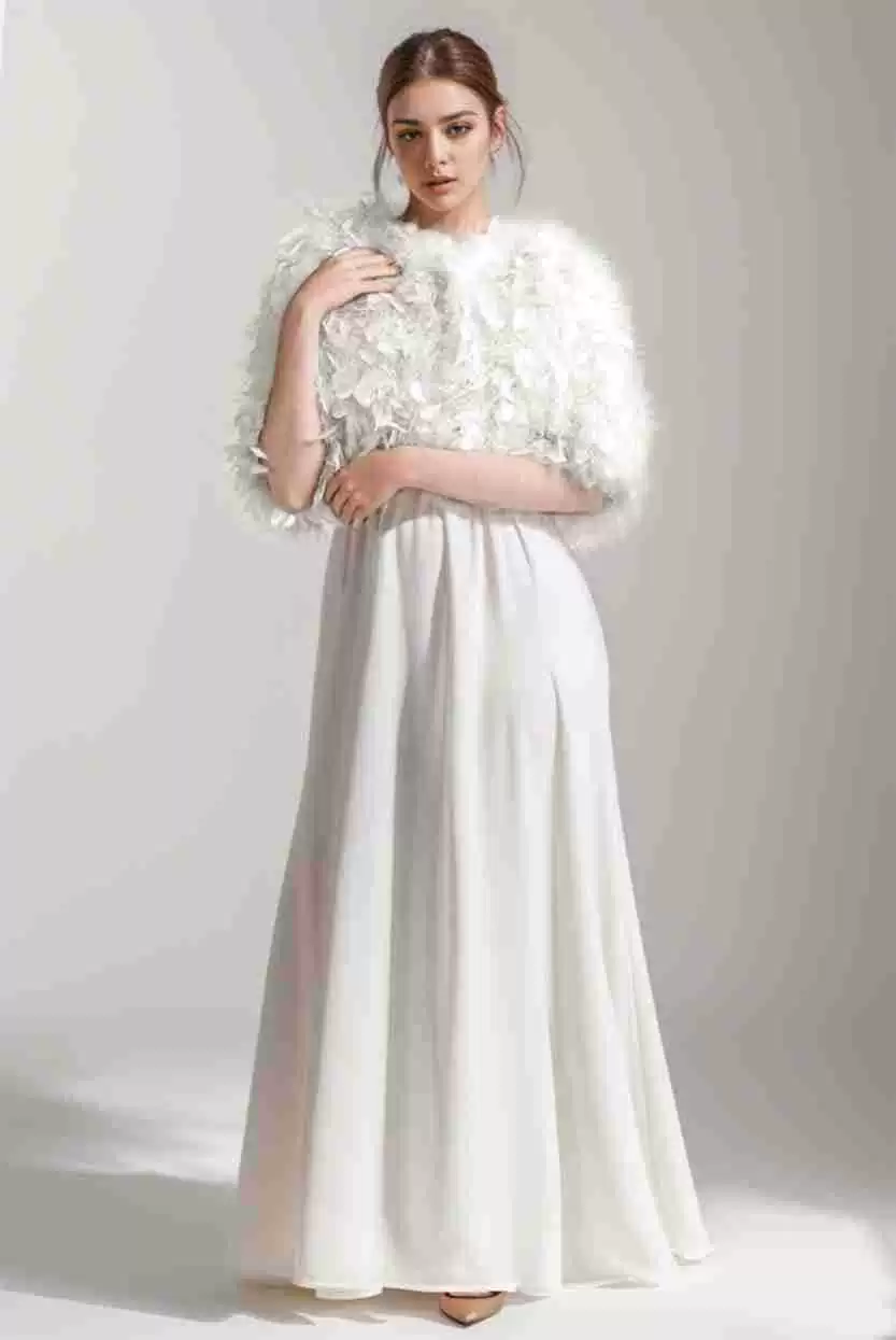 This coat is made of turkey feathers, hand-woven and sewn, the clothes are very soft, the feathers are very soft and flowing