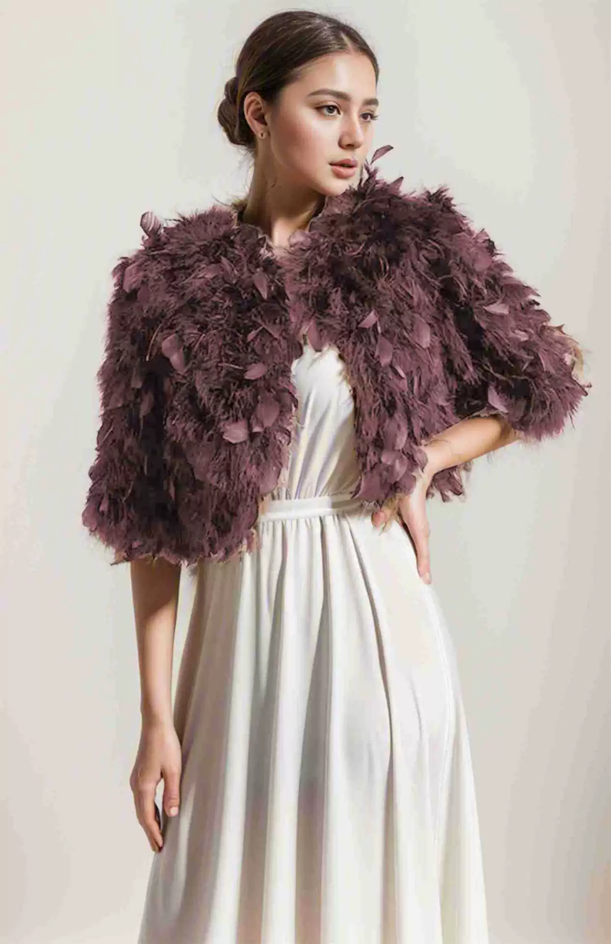 Women's half-sleeved jackets, cropped tops, turkey feather knitted coats, real feather clothing factory, wholesale available, customizable