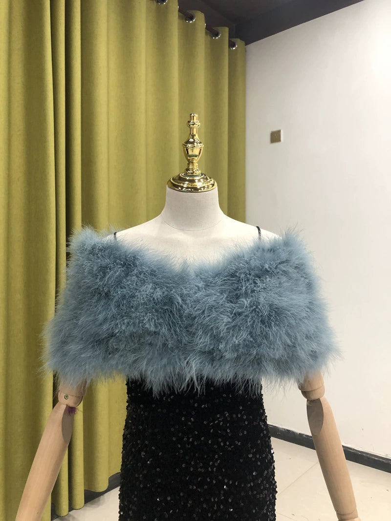Women's shawl, turkey feather shawl, warm and thick cloak, party dress outerwear, can be customized, can be wholesaled, real fur, handmade, soft